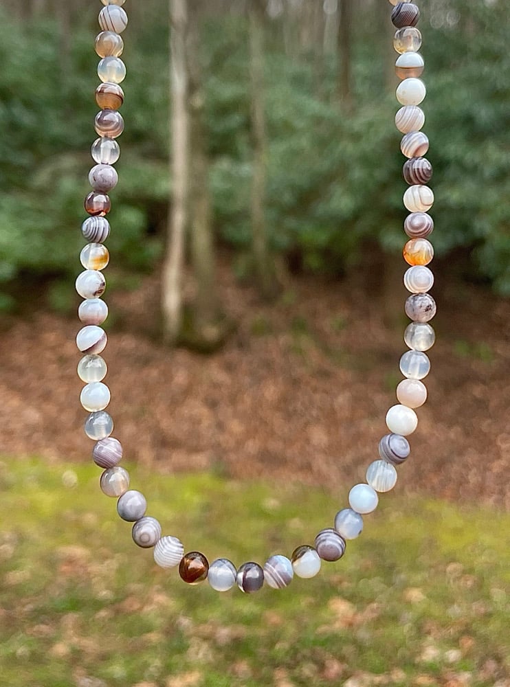Botswana Agate has a soft, calming energy that brings comfort and steadiness. Its natural banding is often associated with balance and emotional stability. Many people wear it to ease worry, clear the mind, and feel more grounded and protected. It’s a gentle stone that supports you during stress or change.